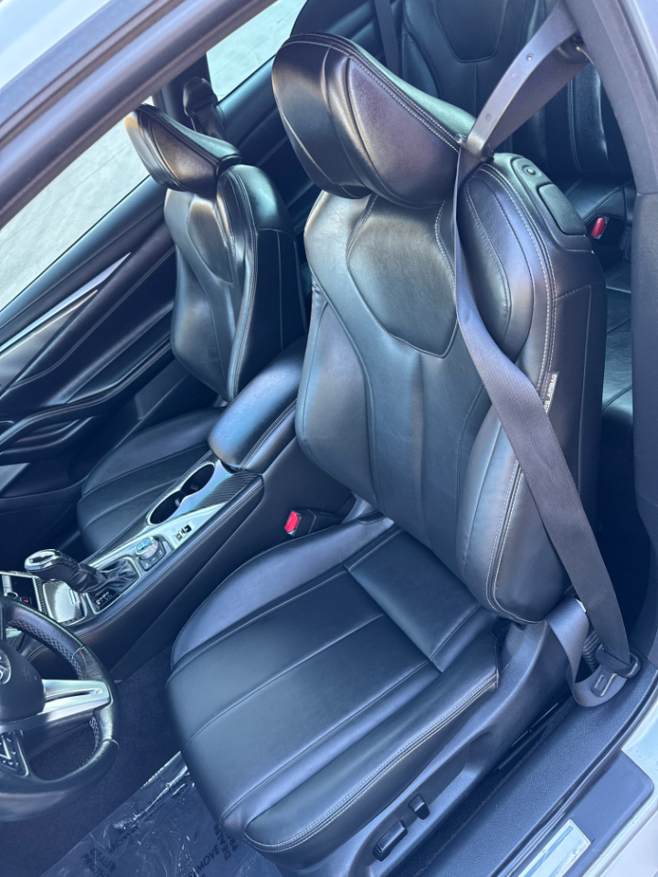 Get ready to rev up your style with this sleek and sophisticated Silver 2018 Infiniti Q60. This turbocharged beauty is as powerful as it is eye-catching, designed to turn heads as you cruise down the road in style. Slip into the luxurious leather seats and feel the power of the 3.0L V6 engine under the hood. With rear-wheel drive and precise steering, this car handles like a dream, making every drive a thrilling experience. The sunroof lets you soak up the sun while the powerful LED headlights illuminate your path ahead. Inside, you'll find modern amenities like a leather steering wheel, dual-zone climate control, and a user-friendly infotainment system. Safety is a top priority with features like side impact beams and dual-stage front airbags, giving you peace of mind on every journey. With its elegant design and impressive performance, this Infiniti Q60 is sure to elevate your driving experience to new heights. Get behind the wheel and experience the thrill for yourself!