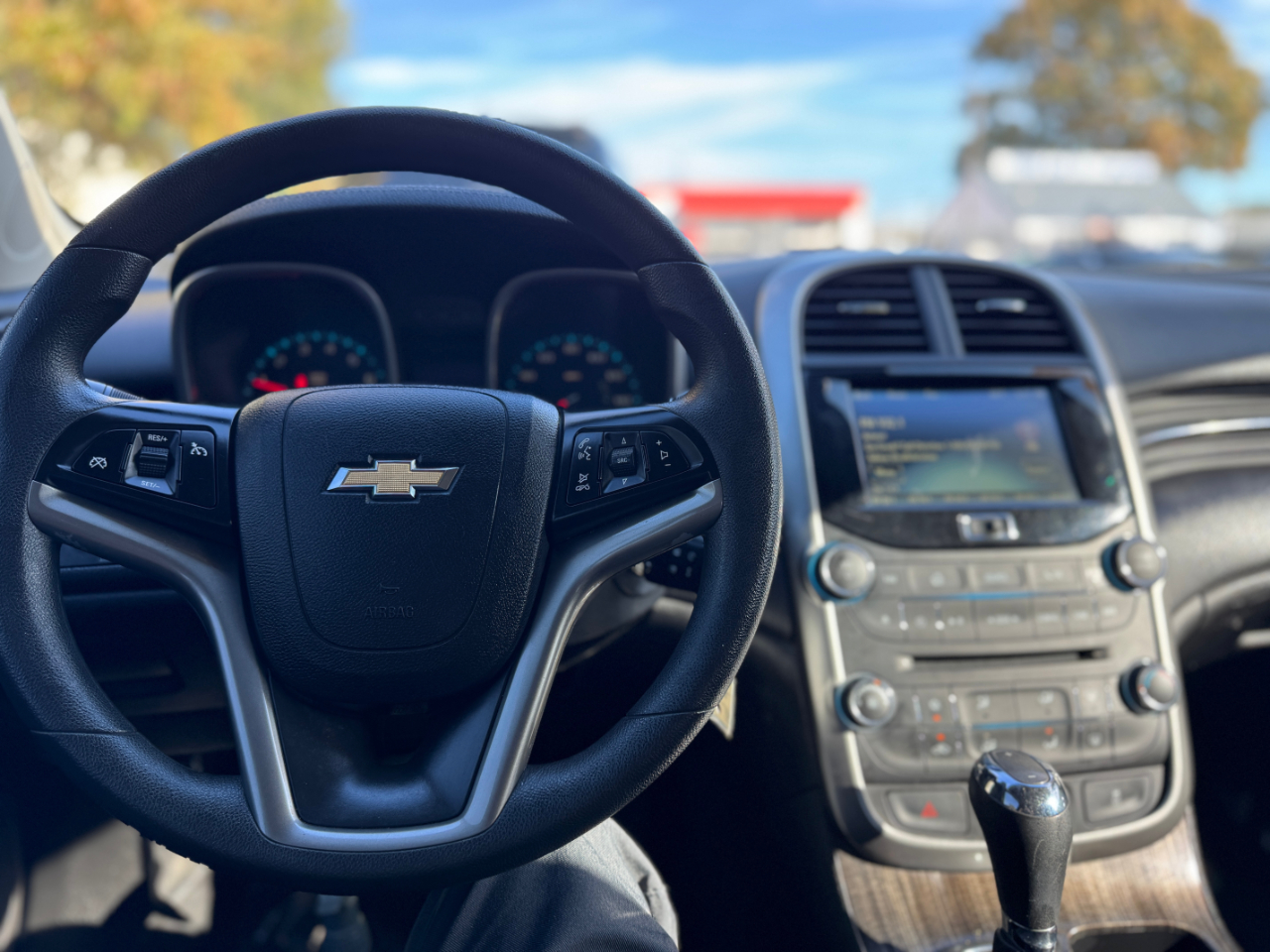 Cruise around town in style with this sleek Charcoal 2015 Chevrolet Malibu. Equipped with a peppy Engine that delivers both power and efficiency, this car is ready to take you on all your adventures. The gear select manual mode adds a fun element to your driving experience, while the front wheel drive ensures a smooth ride every time. With a spacious interior that includes comfortable seating and innovative storage solutions, you'll always have room for your essentials. Stay entertained with the vibrant 7" touch-screen display audio system and enjoy the convenience of voice recognition for phone calls and music selection. Safety features like air bags and stability control provide peace of mind on every journey. This Malibu also boasts stylish features such as halogen headlamps, heated power-adjustable mirrors, and bright window trim. Don't miss out on this fantastic opportunity to own a reliable and stylish sedan that's perfect for your everyday lifestyle.
