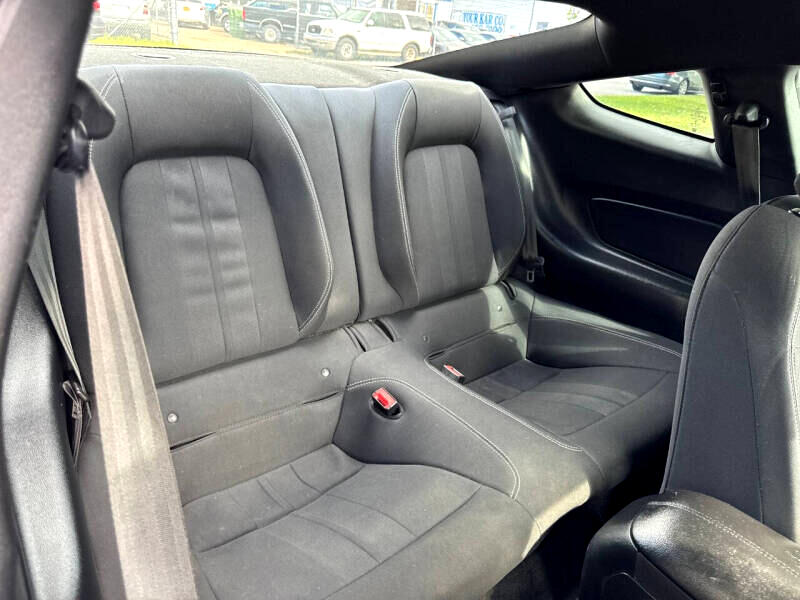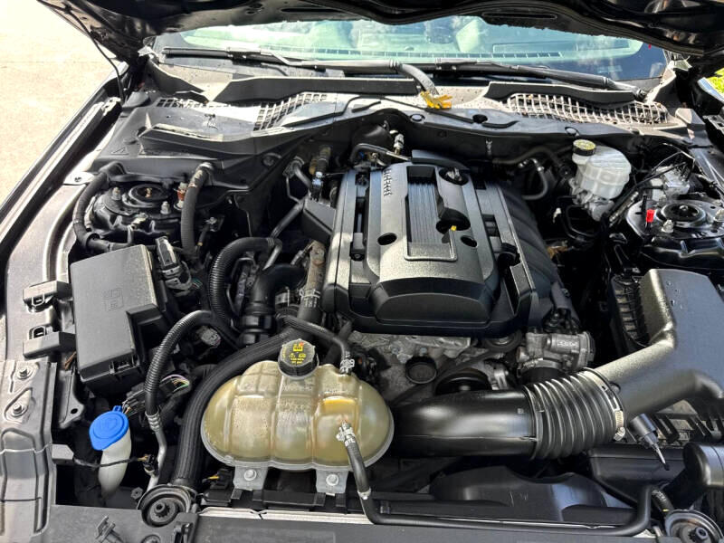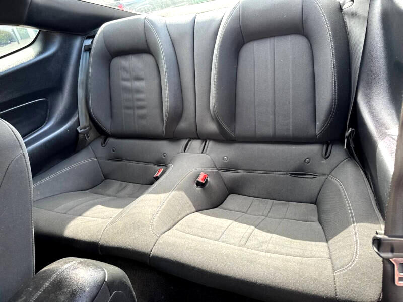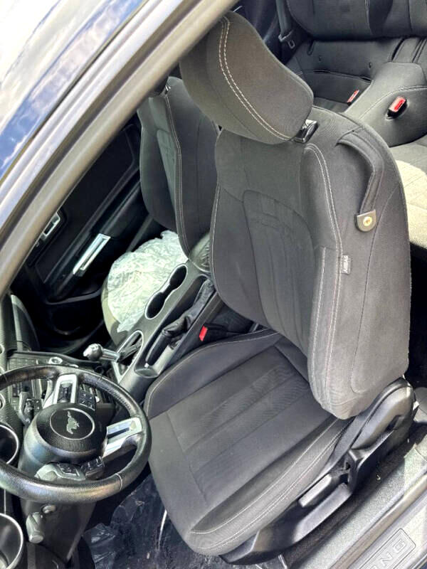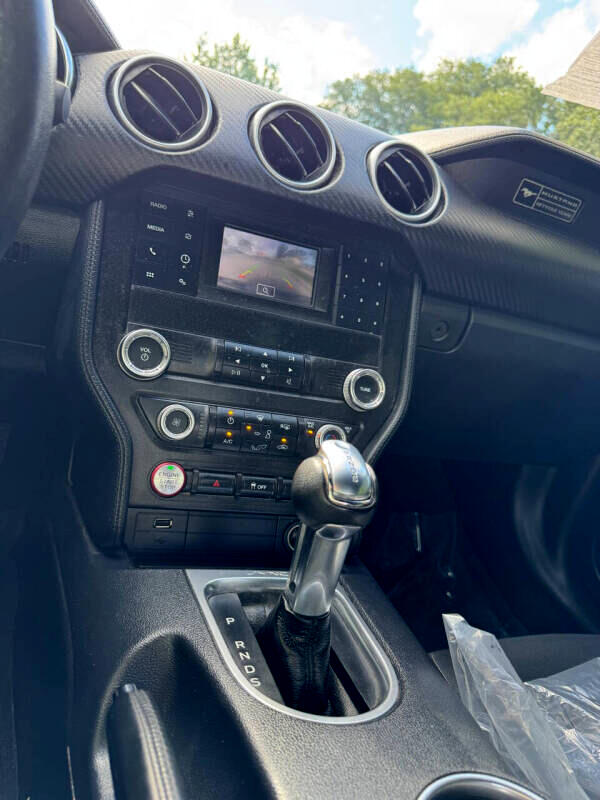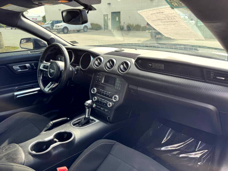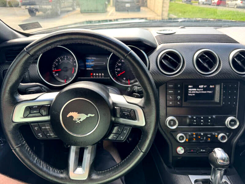 Step inside the cockpit and you'll find a comfortable and stylish interior, complete with modern amenities like a leather-wrapped steering wheel and Cruise Control. The intuitive driver information center and back-up camera provide added convenience and peace of mind during your travels. So, crank up the tunes on the streaming audio system, buckle up, and get ready to experience the thrill of the open road in this dynamic and eye-catching Ford Mustang!