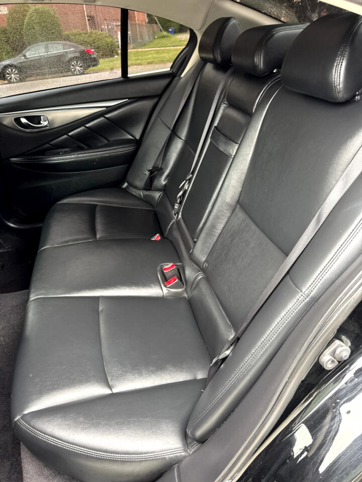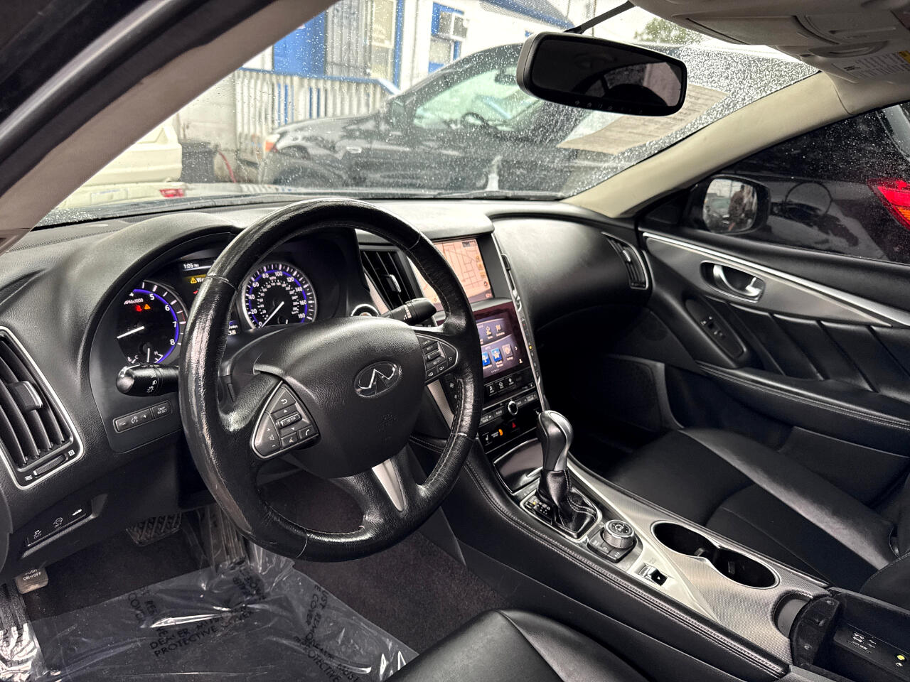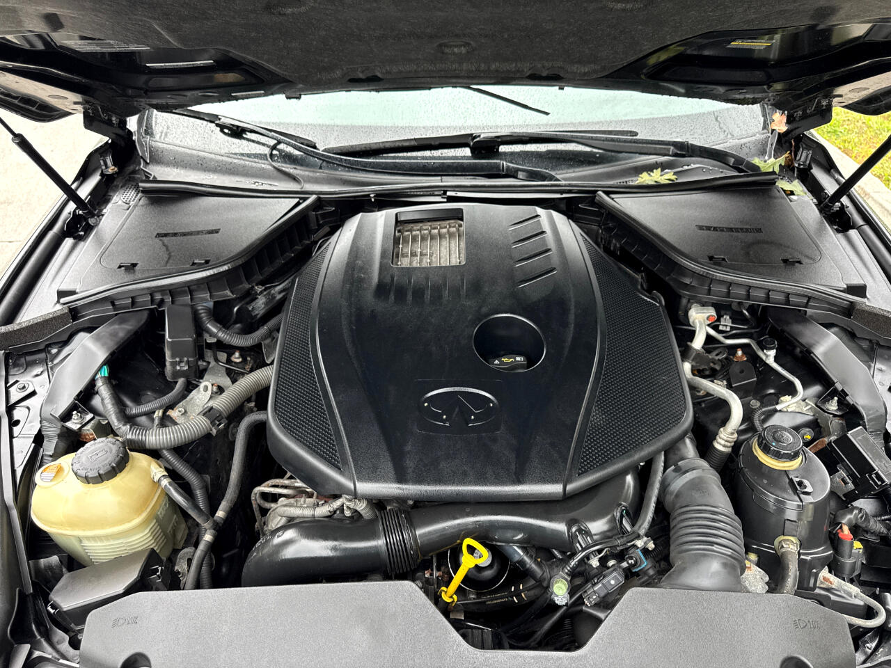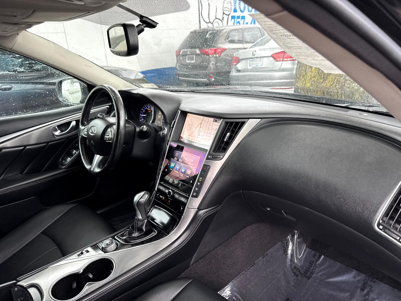Step inside the plush interior and be greeted by leather-trimmed seats that provide both comfort and style. The dual-zone automatic climate control keeps you and your passengers in perfect harmony no matter the weather outside. With convenient features like a power sunroof for those sunny days, a HomeLink garage door transmitter for easy access, and Bluetooth connectivity for seamless music streaming, this Q50 is designed to cater to your every need.