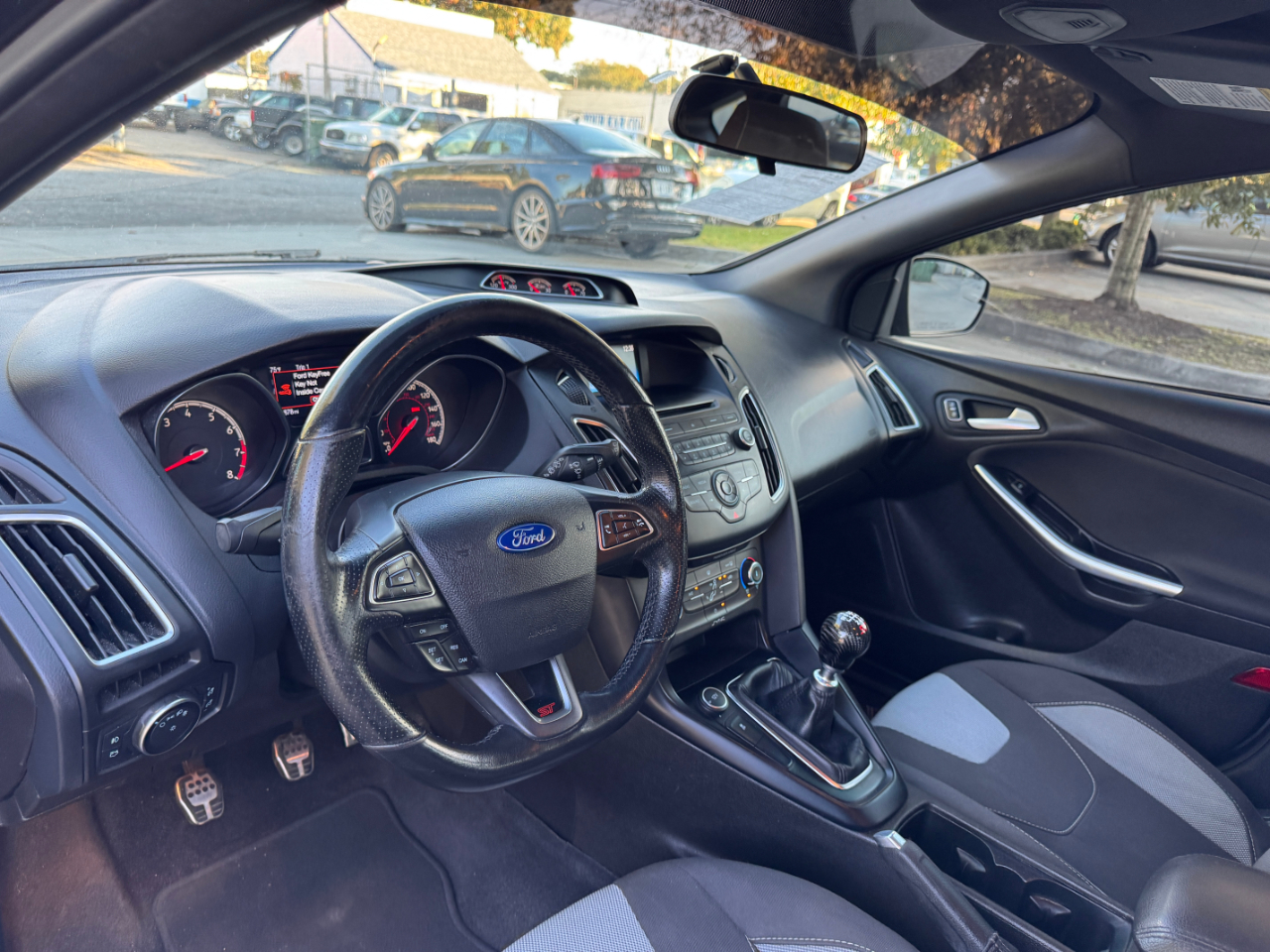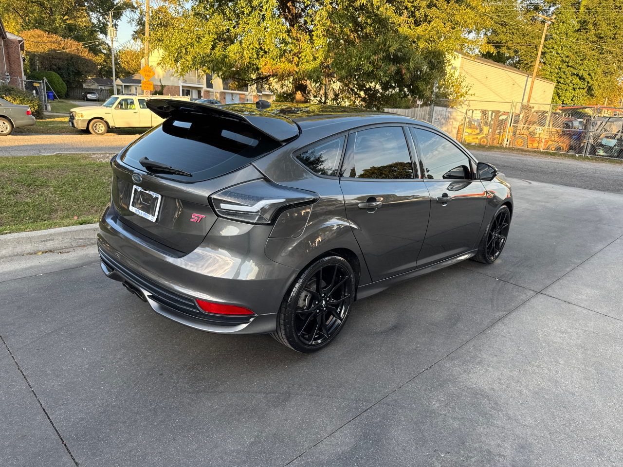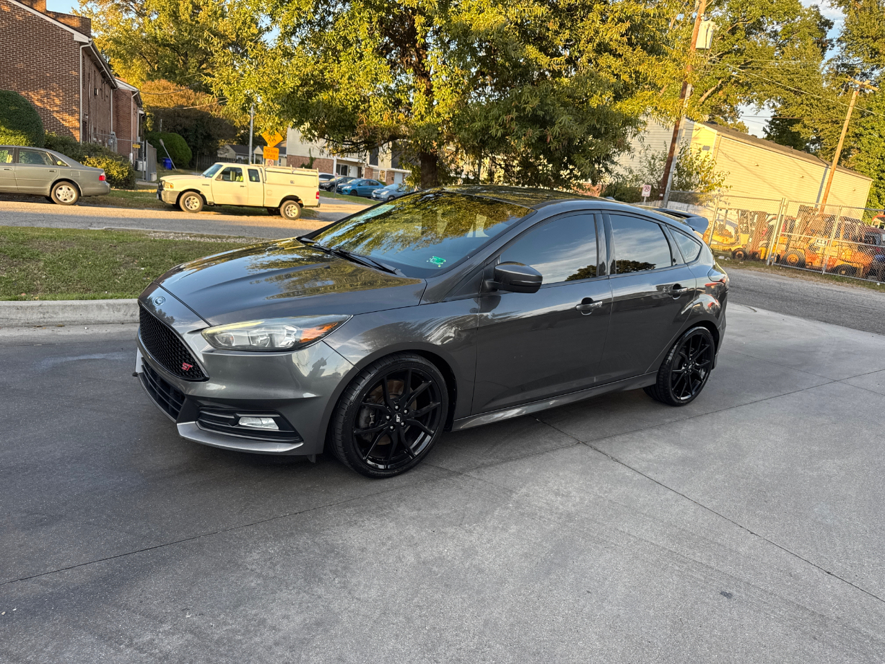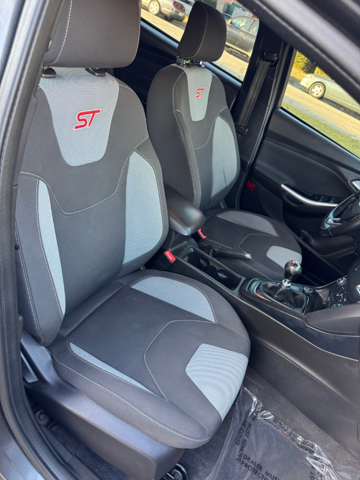 Hop into this sleek Gray 2016 Ford Focus ST and get ready for a fun-filled ride! With its sport-tuned suspension and precise electric power-assist steering, you'll be navigating the streets with ease. The bold black grille and wing spoiler give this car a stylish edge, while the full-size spare tire adds a practical touch.