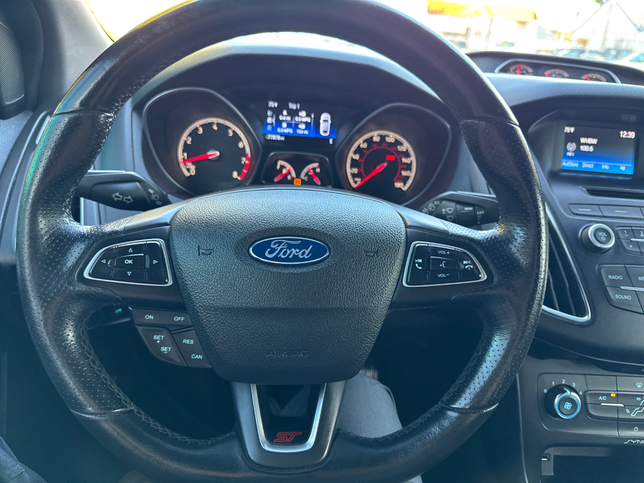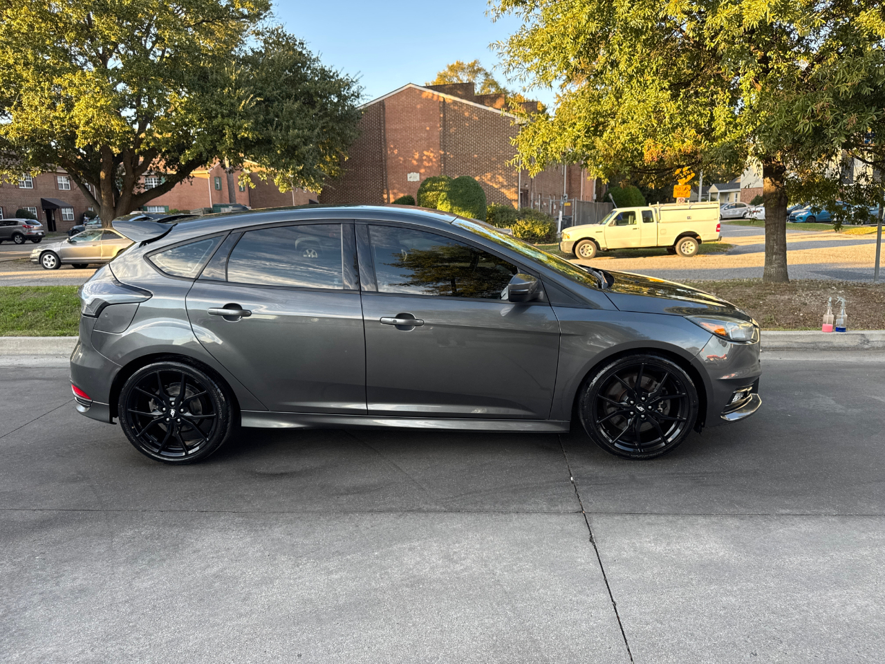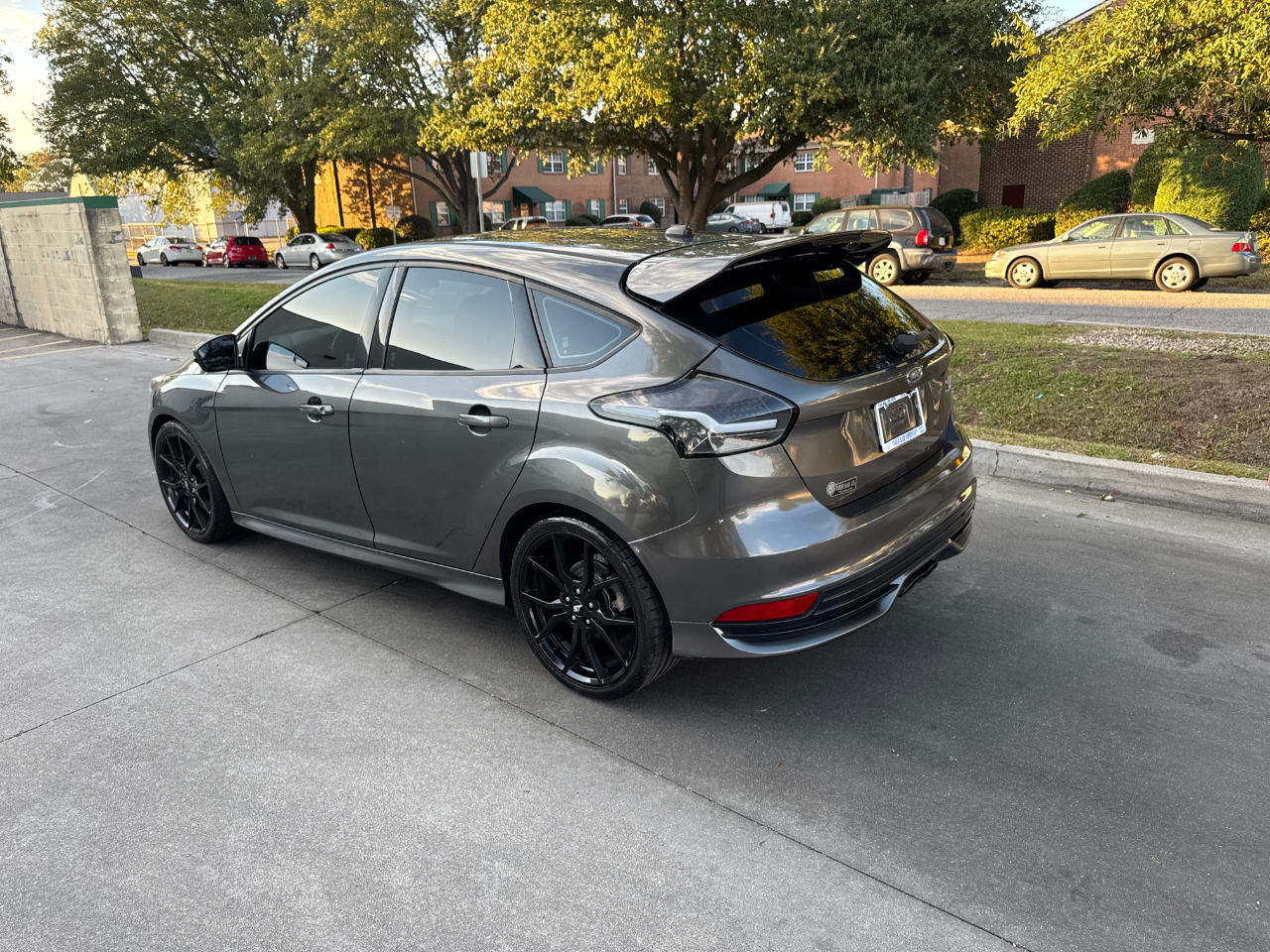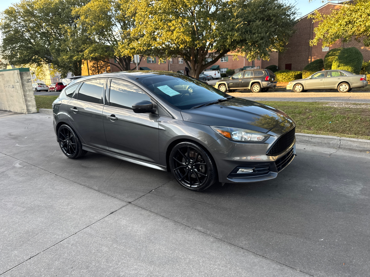 Hop into this sleek Gray 2016 Ford Focus ST and get ready for a fun-filled ride! With its sport-tuned suspension and precise electric power-assist steering, you'll be navigating the streets with ease. The bold black grille and wing spoiler give this car a stylish edge, while the full-size spare tire adds a practical touch.