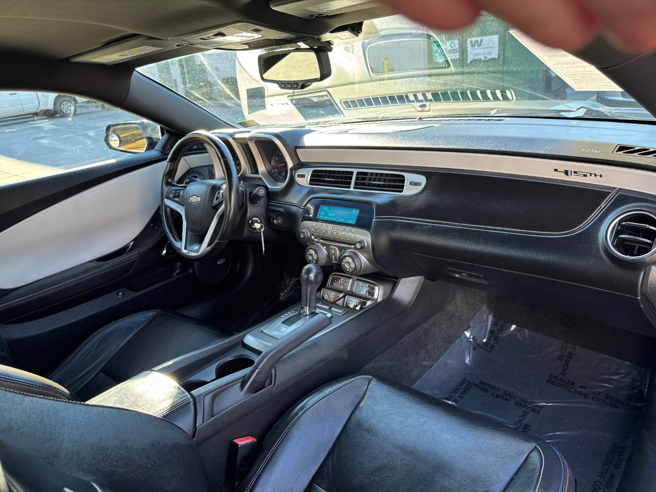 Buckle up for a thrill ride in this Carbon Flash Metallic 2012 Chevrolet Camaro 45th Anniversary Edition! With a roar of its 3.6L SIDI DOHC V6 VVT engine, it's ready to unleash 323 horsepower of pure excitement on the open road. Boasting a sleek body-color design with black roof ditch molding and body-color lower rocker moldings, this Camaro is a head-turner from every angle. Slip into the heated driver and front passenger seats, adjust the leather-wrapped steering wheel, and hit the road with Bluetooth connectivity and a premium 9-speaker Boston Acoustics audio system blasting your favorite tunes. Keep an eye on your speed and gear with the Head-Up Display while cruising comfortably with the adjustable power seats and single-zone air conditioning. Safety features such as stability control, dual-stage airbags, rear park assist, and a rearview camera ensure a secure journey. With its sporty aesthetics and powerful performance, this Chevrolet Camaro is not just a car; it's an adrenaline-fueled experience waiting to happen!