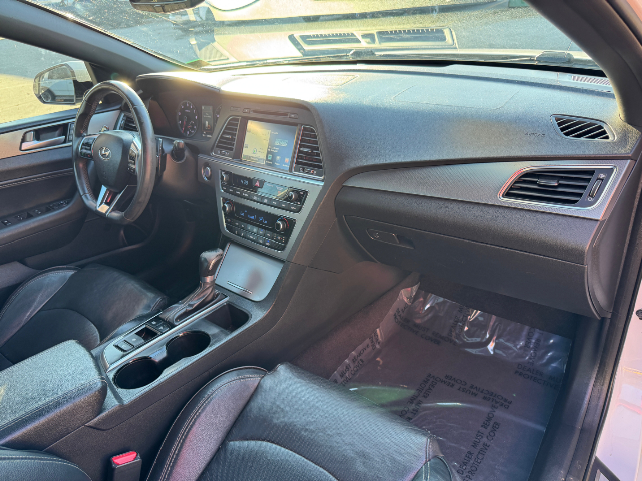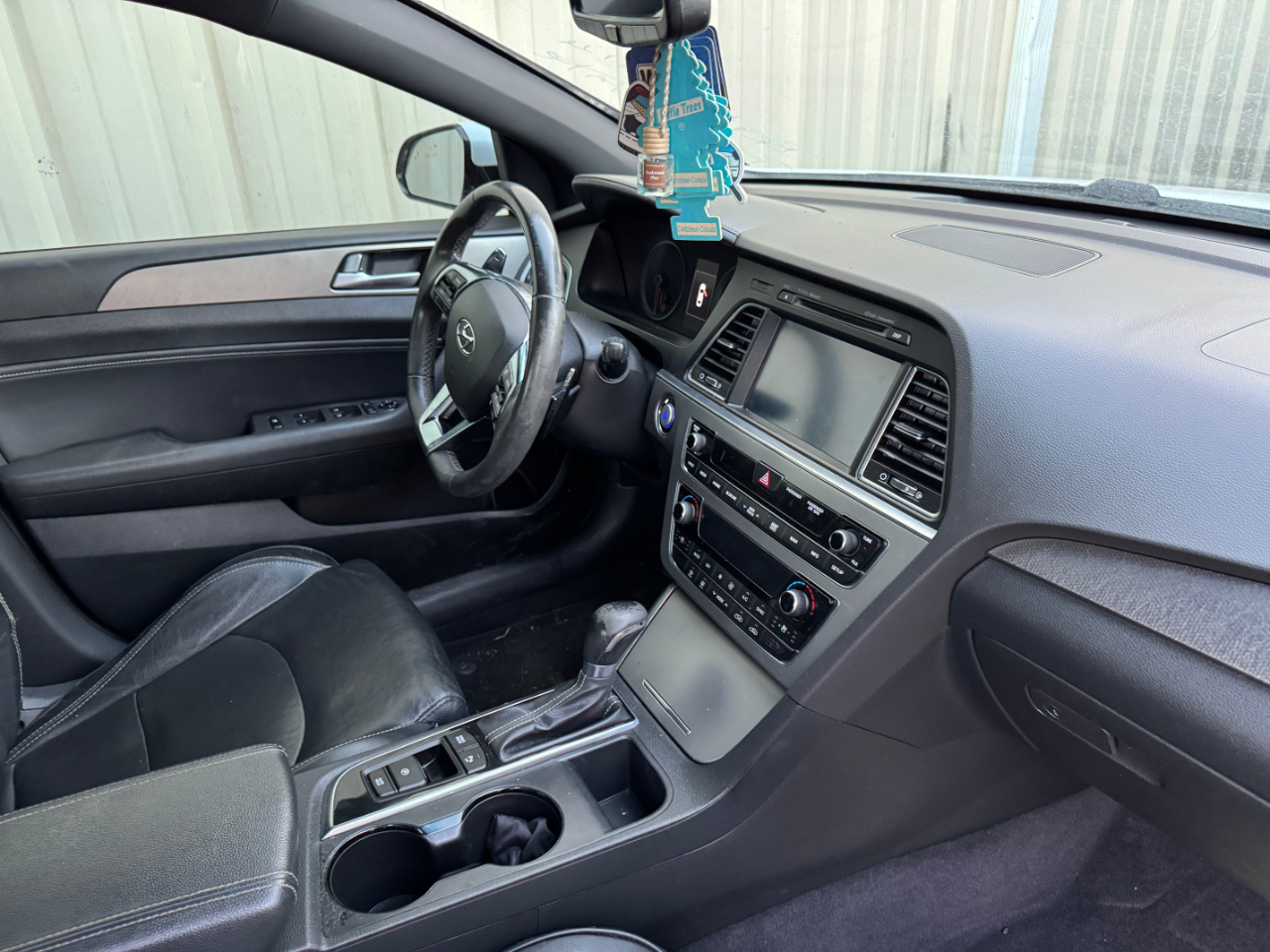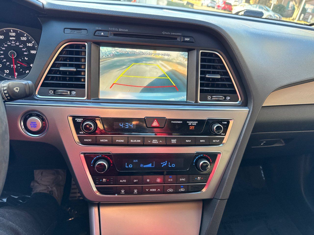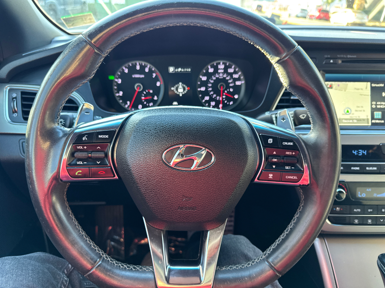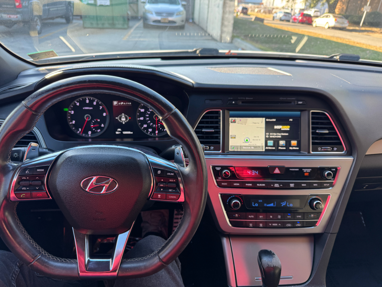 Buckle up and get ready for a turbocharged joyride in this 2015 Hyundai Sonata! This sleek and stylish sedan is equipped with a powerful 2.0L GDI Turbo 4-Cylinder engine that provides an exhilarating driving experience. The 6-speed automatic transmission with SHIFTRONIC and steering wheel-mounted paddle shifters allows for seamless gear changes and sporty manual mode driving. But it's not all about speed - this Sonata also offers luxury and comfort with a sunroof, leather interior, heated front and rear seats, dual-zone climate control, and adaptive cruise control for a smooth ride. Stay connected on the go with Bluetooth wireless phone connectivity and streaming audio. Safety is a top priority with blind spot monitoring, rear parking sensors, lane departure warning, and a backup camera for added peace of mind. Whether you're commuting to work or cruising on the open road, this Hyundai Sonata has everything you need for an exciting and enjoyable driving experience.