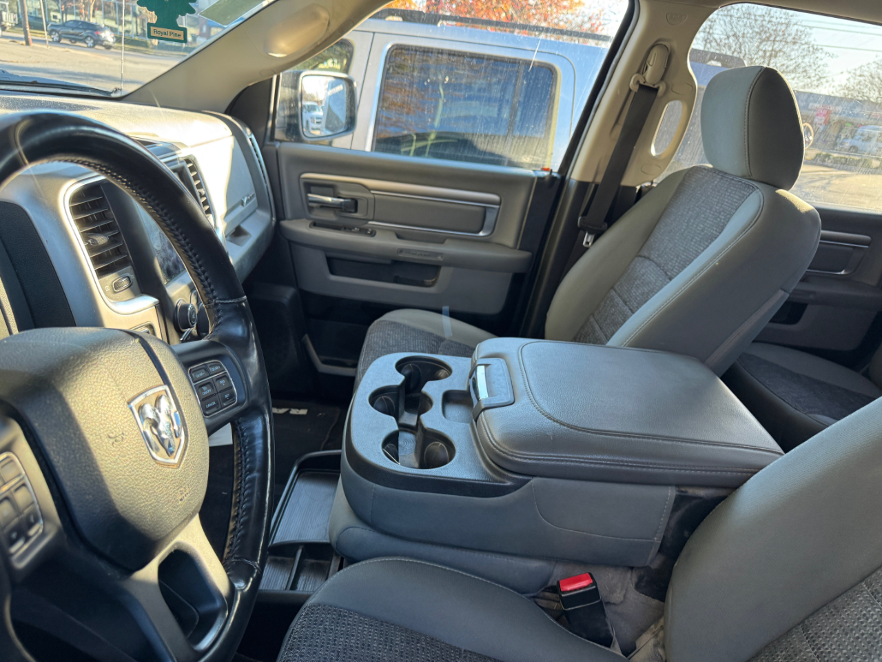 Hop into this sleek Charcoal 2018 RAM 1500 and get ready to hit the road with confidence! This beast of a truck is equipped with a powerful engine and heavy-duty cooling for all your towing needs. With part and full-time four-wheel drive, this vehicle is ready to take on any terrain you encounter. The striking exterior features chrome accents and a rugged yet polished design that is sure to turn heads wherever you go.