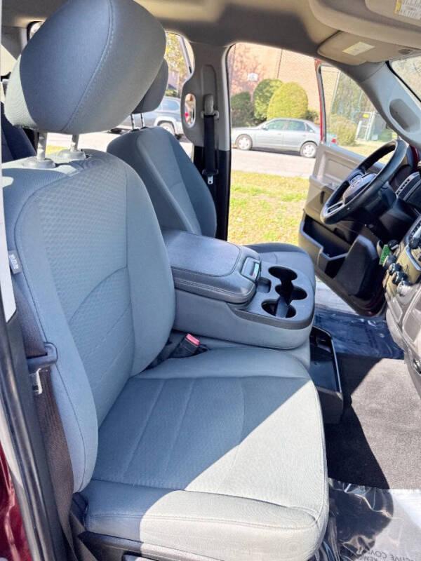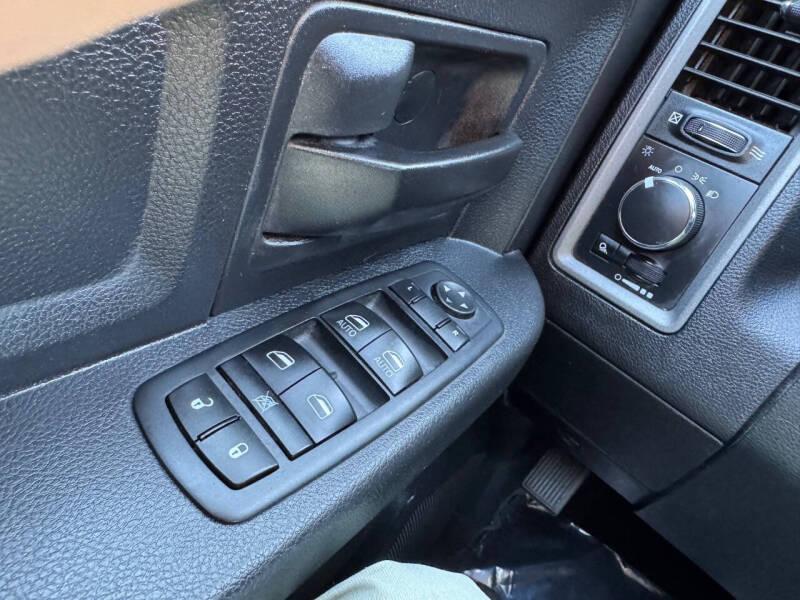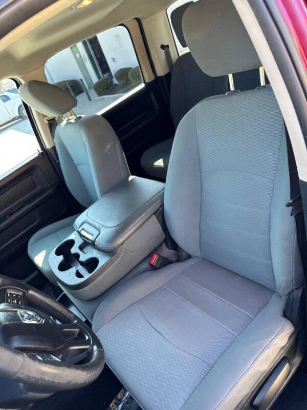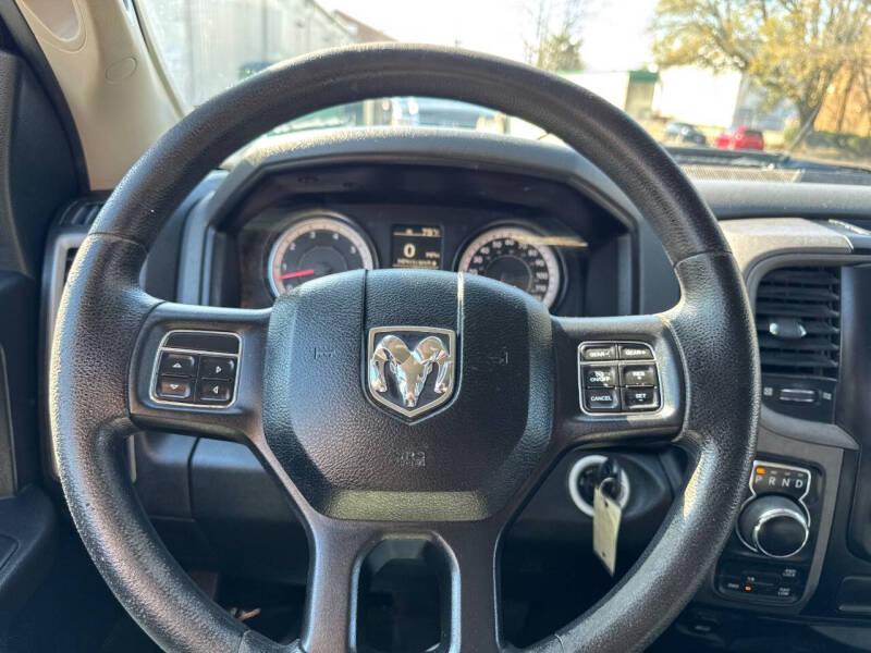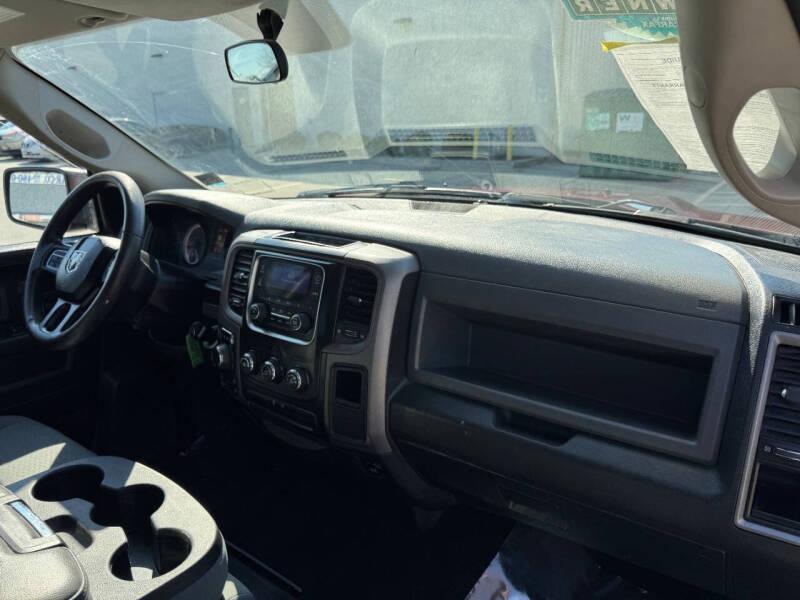 Get ready to turn heads in this sleek Delmonico Red Pearlcoat ONE OWNER 2017 RAM 1500! This beast of a truck is equipped with a powerful engine and part-time four-wheel drive, making it perfect for any adventure. With a spacious interior featuring vinyl seats and manual air conditioning, you'll be cruising in comfort wherever you go. The black exterior gives it a bold and rugged look, while the deep tinted glass adds a touch of mystery. Safety features like dual stage airbags and rear child safety locks provide peace of mind for you and your passengers. Whether you're hauling heavy loads or just cruising around town, this RAM 1500 has got you covered with its impressive towing capacity and reliable braking system. Don't miss out on the opportunity to own this versatile and stylish truck that's ready to tackle any terrain with ease!
