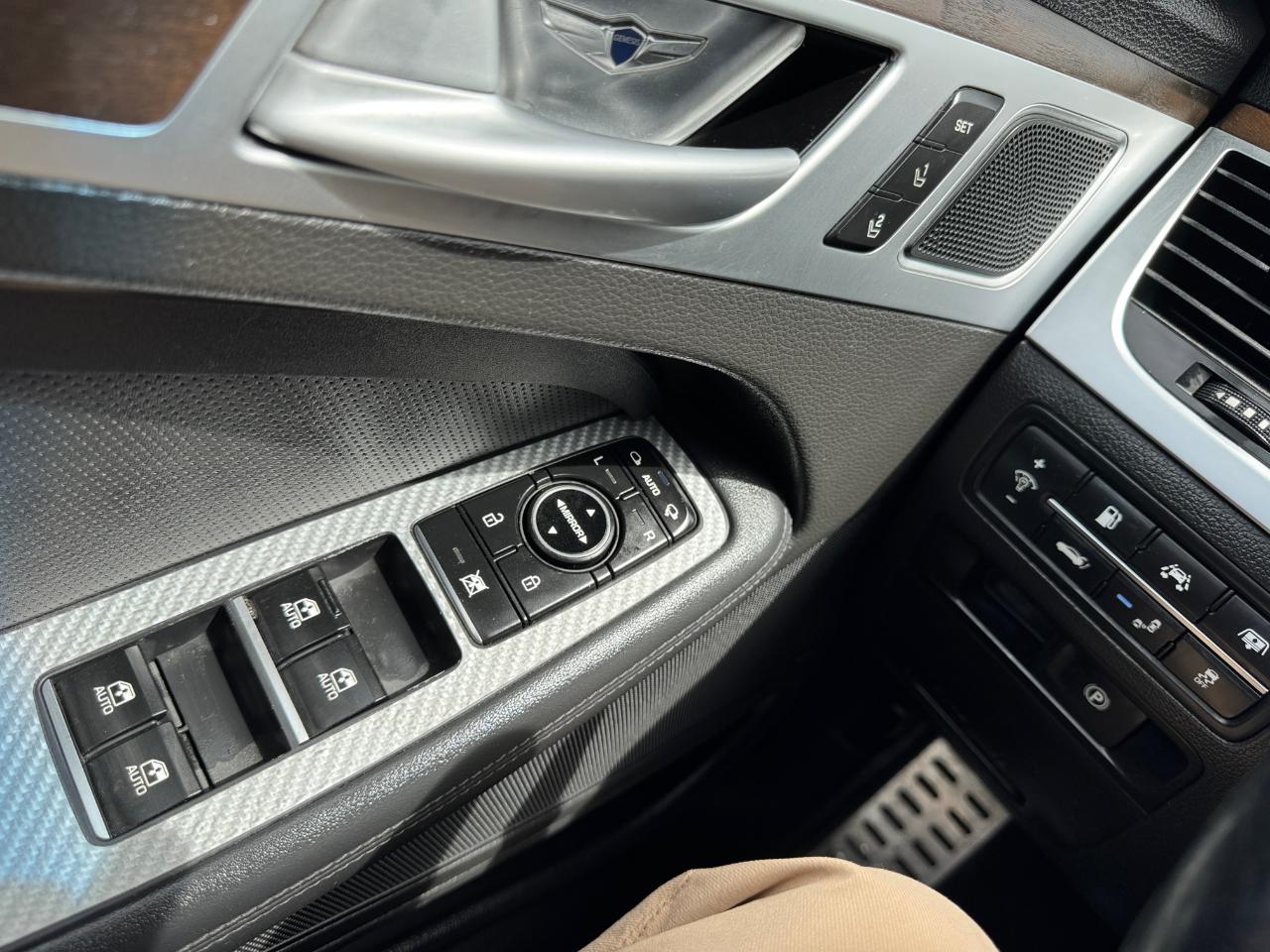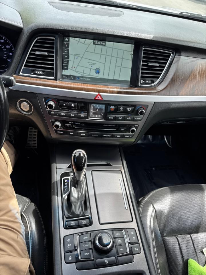 This 2015 Hyundai Genesis AWD is a premium full-size sedan that delivers a smooth, quiet ride with the comfort and features you expect from a luxury-class car. INCLUDES TECHNOLOGY PACKAGE w/ HEADS UP DISPLAY. It’s powered by a strong 3.8L GDI DOHC V6 with Dual CVVT, paired with an automatic transmission and all-wheel drive, giving you confident performance and added traction for year-round driving. Finished in silver with a clean black leather interior, it has a sharp, upscale look inside and out.